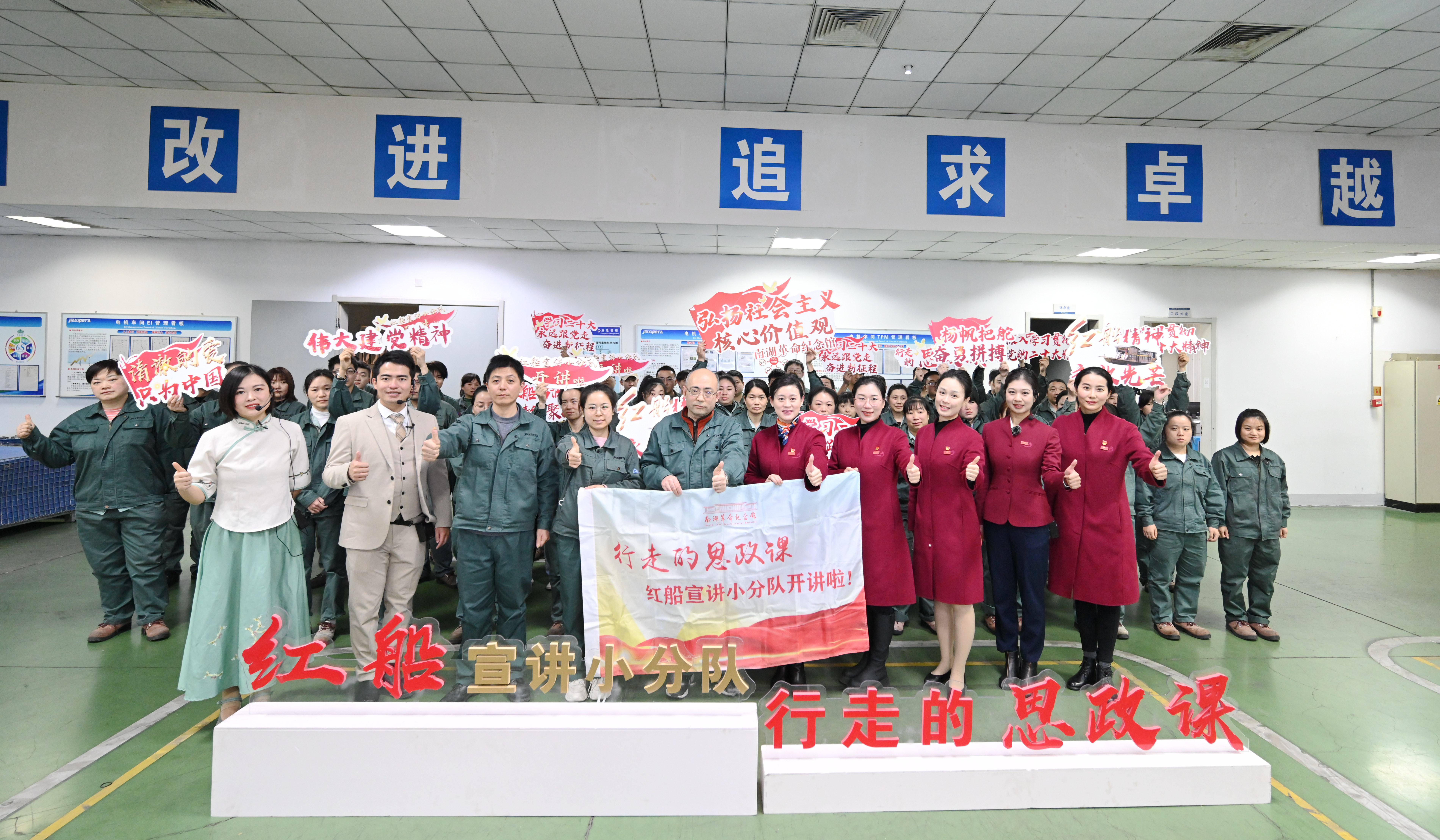 此次活动深入工人生产第一线,用通俗易懂而又掷地有声的语言分享着党代会精神,帮助工人群众在车间里觅初心,在工厂里学知识,有力促进了红色精神宣讲与工匠精神培育体系的有机融合,同时也打通了红色场馆宣讲与基层党建育人融合落地的“最后一公里”。