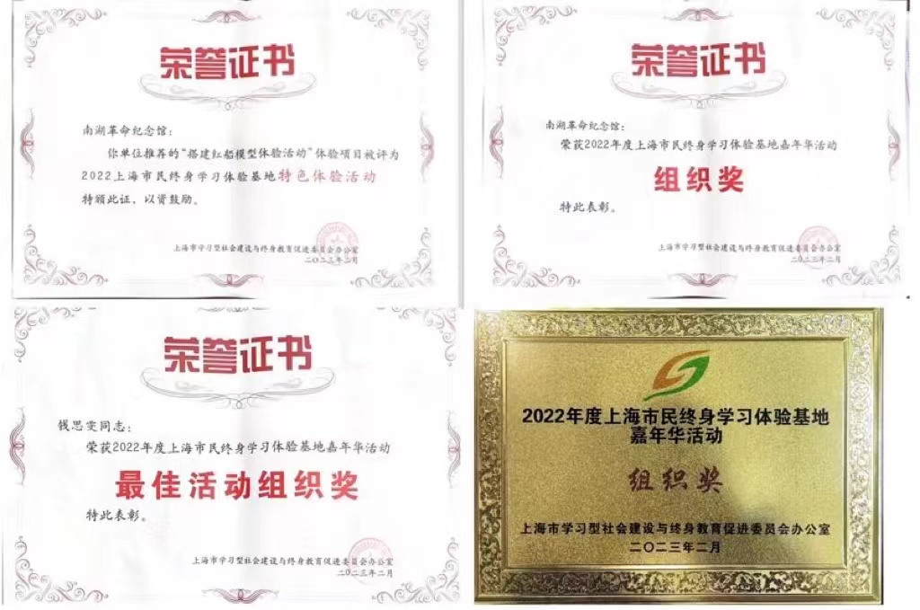 2022年度上海市民终身学习体验基地总结会在上海召开。我馆作为上海市民终身学习南湖革命传统基地,在表彰活动中荣获“体验基地嘉年华活动优秀组织奖”,“搭建红船模型”体验活动获评“品牌体验项目”,钱思雯同志荣获“最佳活动组织奖”。