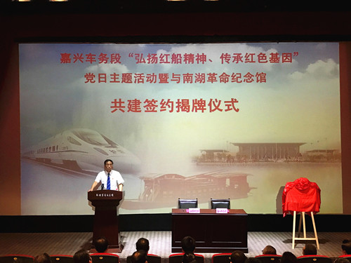 为贯彻落实中共中央关于全面从严治党要求,继承和弘扬“红船精神”,充分发挥南湖革命365bet皇冠体_365bet在线注册_office365账号永久激活社会教育功能,扩大全国红色教育基地的影响力和辐射面,9月27日上午,我馆与上海铁路局嘉兴车务段举行共建党员教育基地签约揭牌仪式。